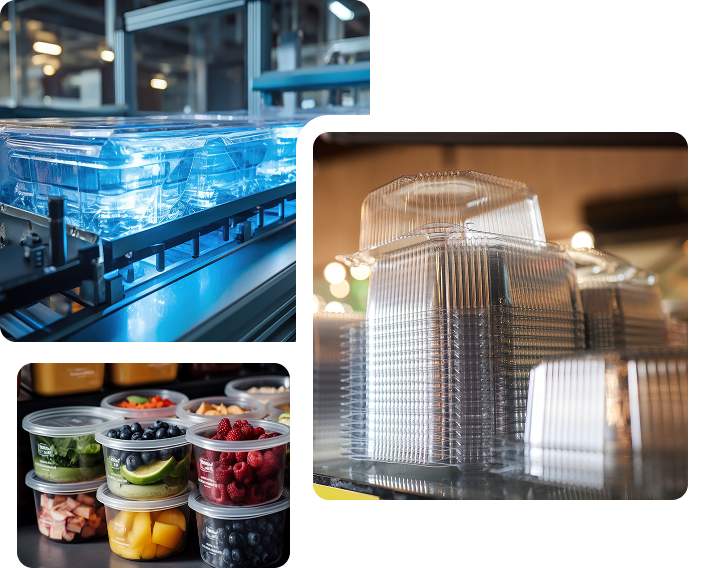 Large gamme de contenants hygiéniques : barquettes, cloches, gobelets, kits dessert et films. Des solutions pensées pour la conservation, la sécurité et l’attractivité.